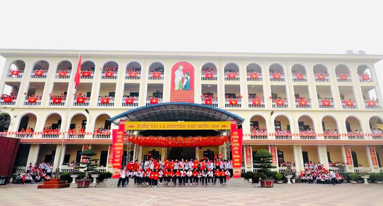 hành lang, lớp học đến các góc sân trường đều nhuộm màu sắc cờ đỏ sao vàng, thắm màu tự hào