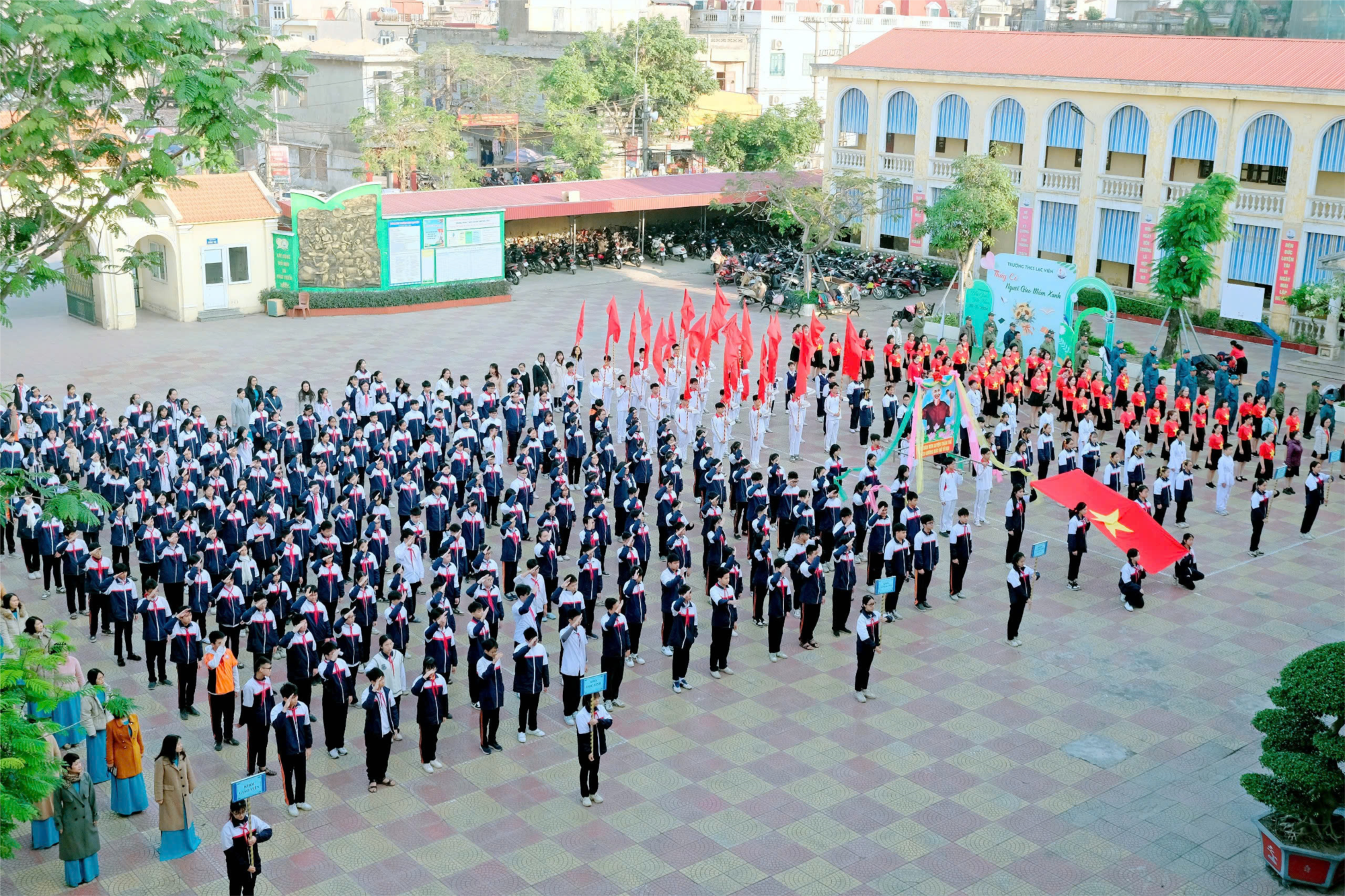 Cùng các ông bà đại diện lãnh đạo các tổ dân phố, đại diện lực lượng vũ trang , an ninh, quân sự, đại biểu hội phụ nữ Phường Máy Chai, Hội đồng sư phạm nhà trường và hơn 500 HS đại diện cho gần 1550 HS trường THCS Lạc Viên.